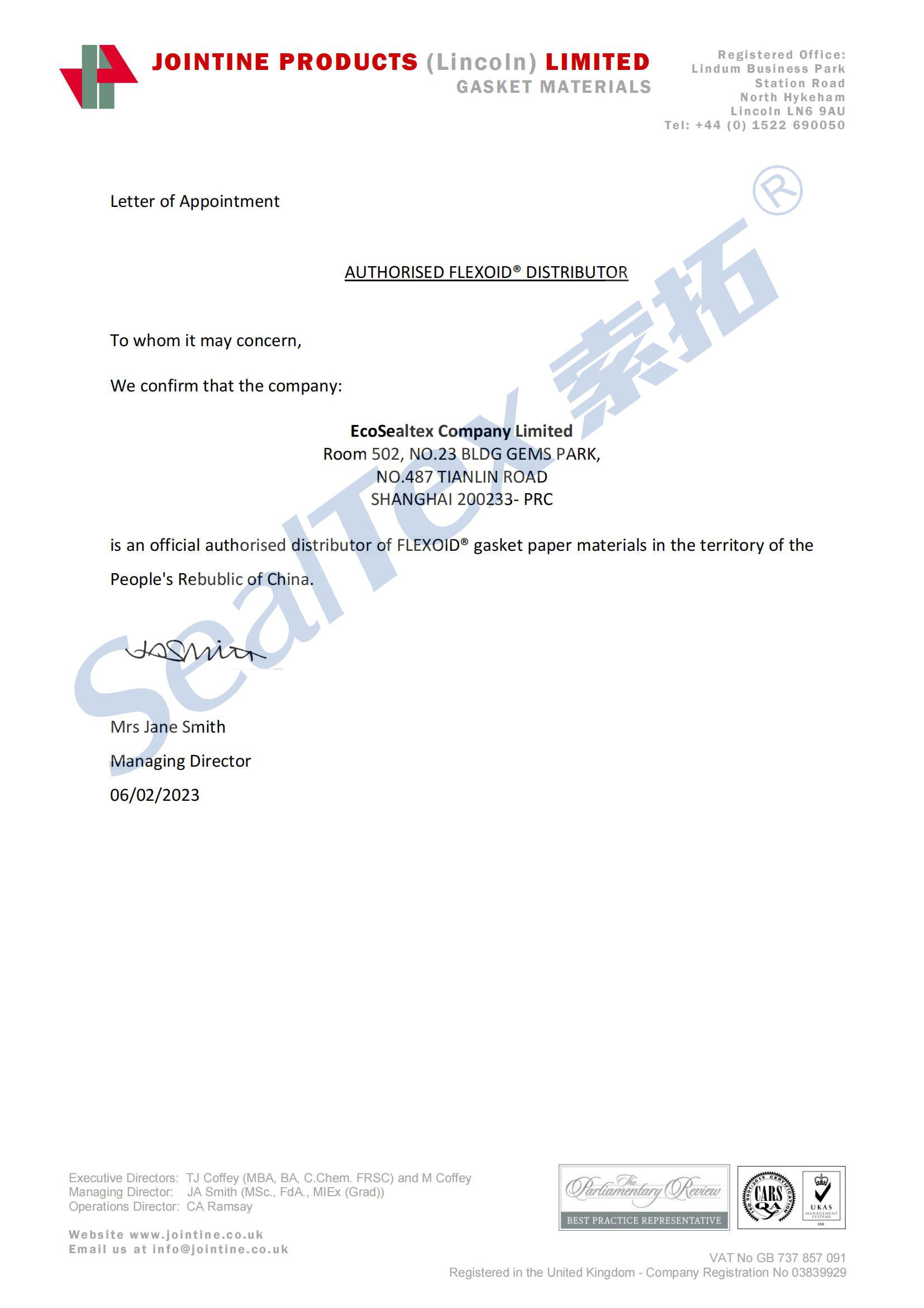 SealTex索拓與Flexoid正式簽署代理合作協議